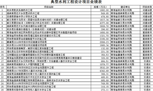 防洪、人饮、灌溉项目业绩